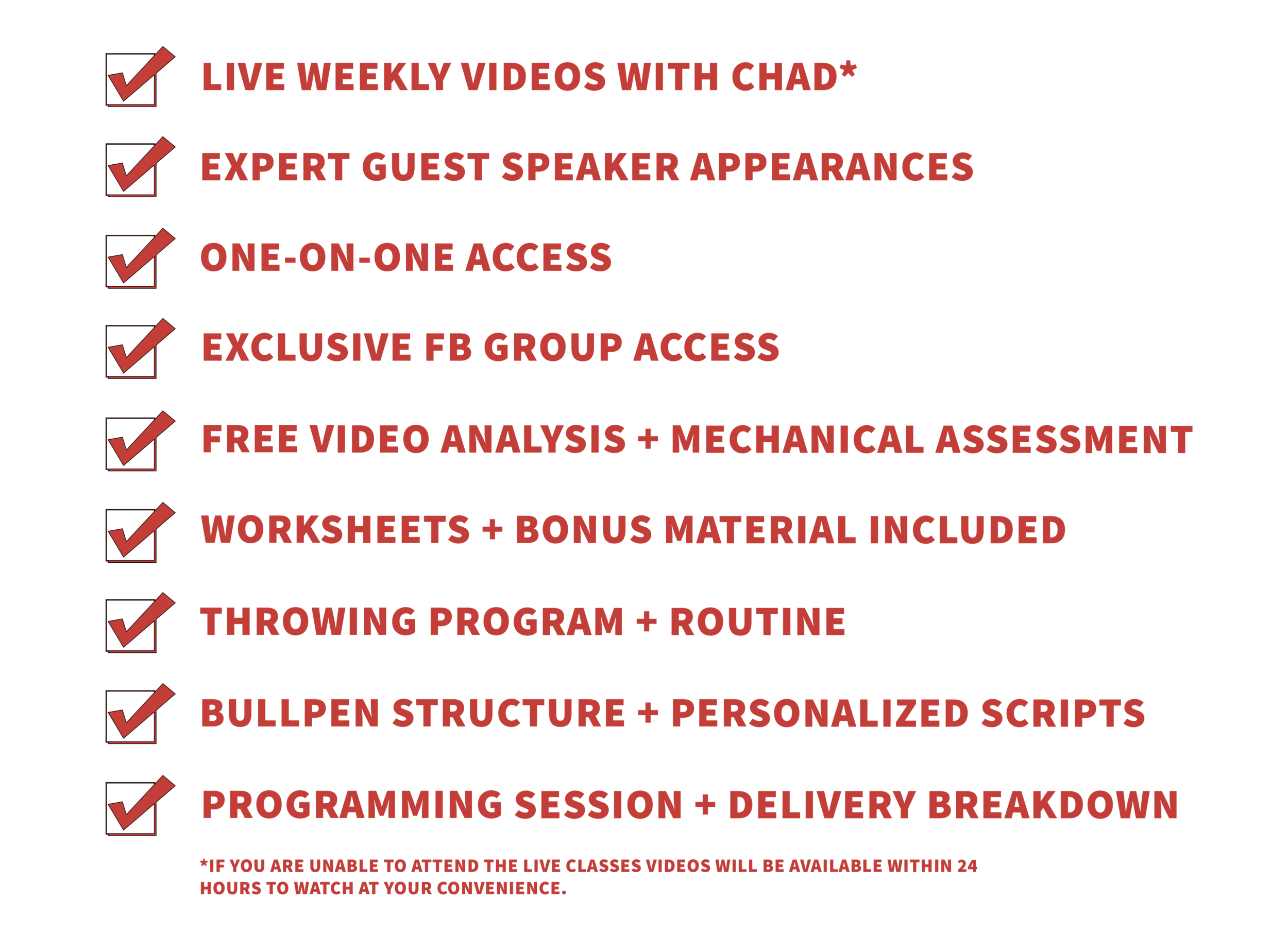 The objectives of this course are to introduce ideas for growth and development of the professional pitcher. We exist to provide a creative and innovative progression that is easy to follow and take with you. This course is designed to help you become your own best pitching coach, offering steps and tips to implement to your game no matter where you are at in your own personal development.